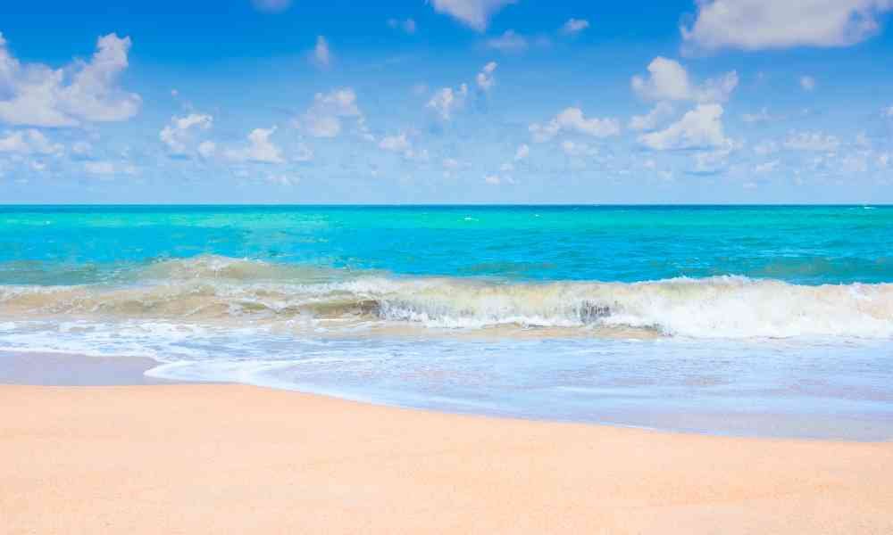 White sandy beach with turquoise waters, perfect for relaxation, sunset views, and photography.