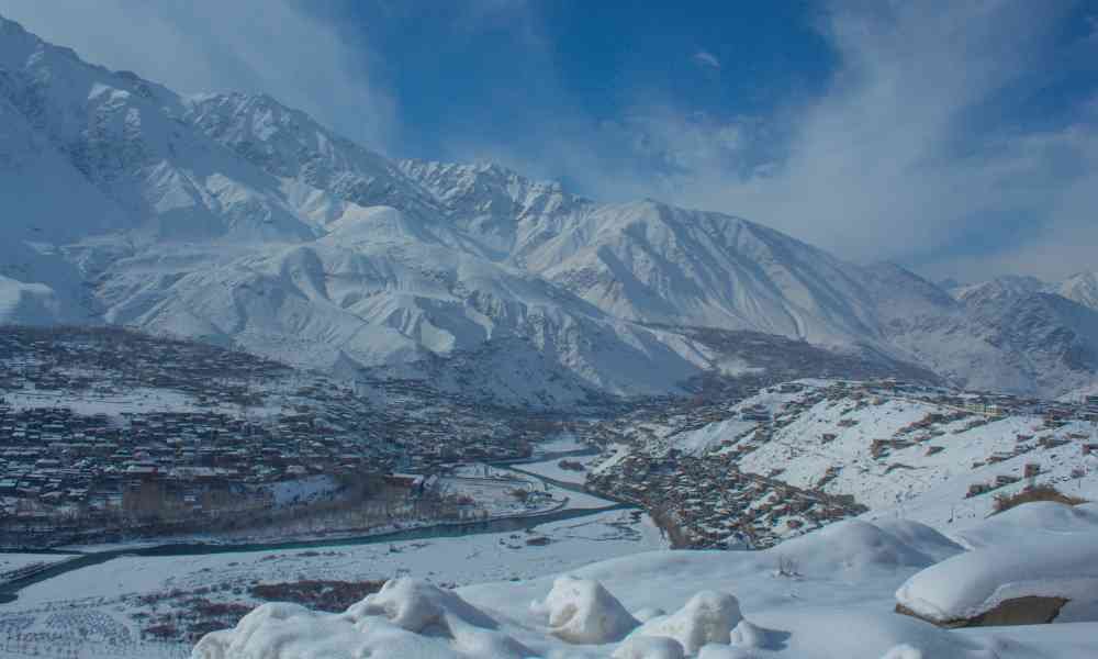 Desert valley with sand dunes, camel rides, cold desert scenery, and peaceful villages.