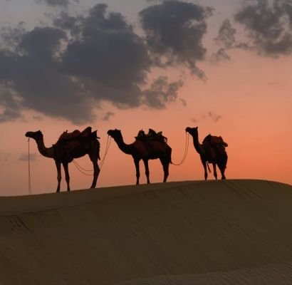 Visit golden fort, desert dunes, camel rides, local music, folk art, and sunset over Thar Desert.