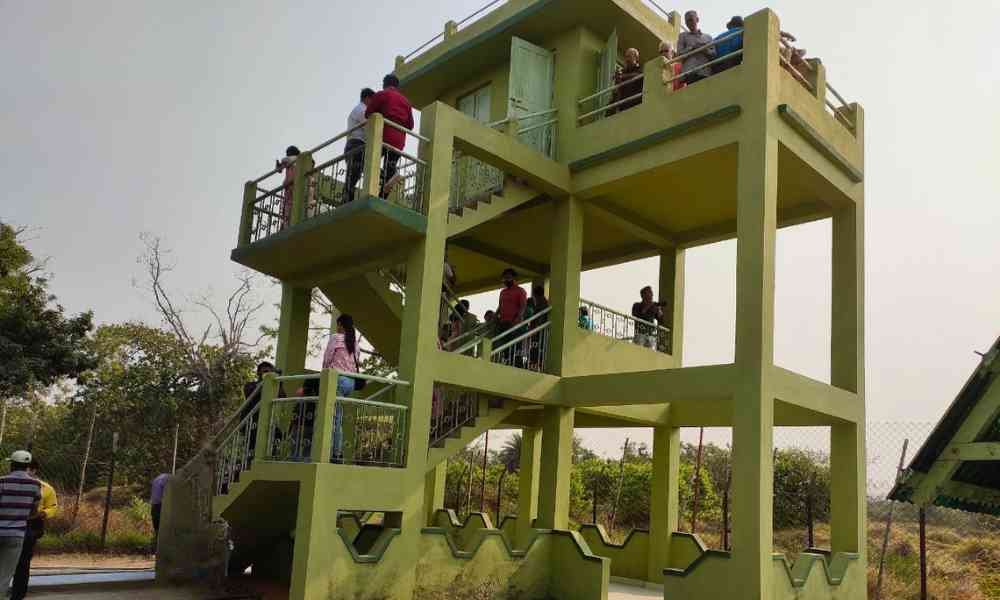 Best chance to spot Royal Bengal Tigers, crocodiles, and deer from this forest department tower.